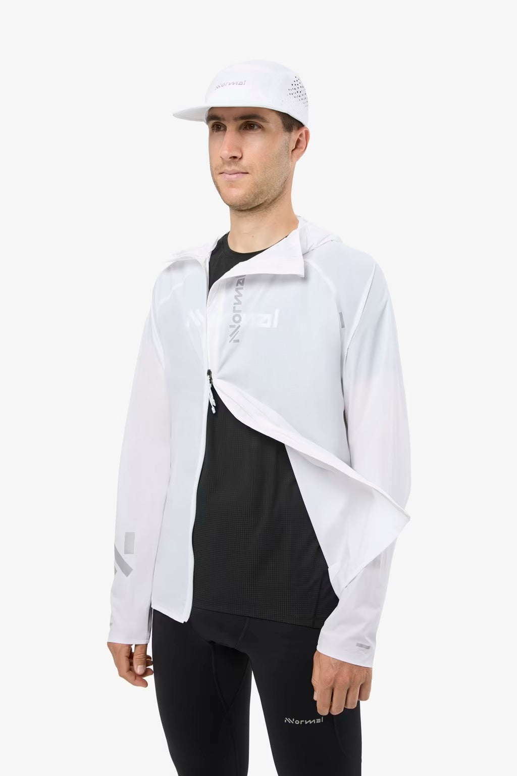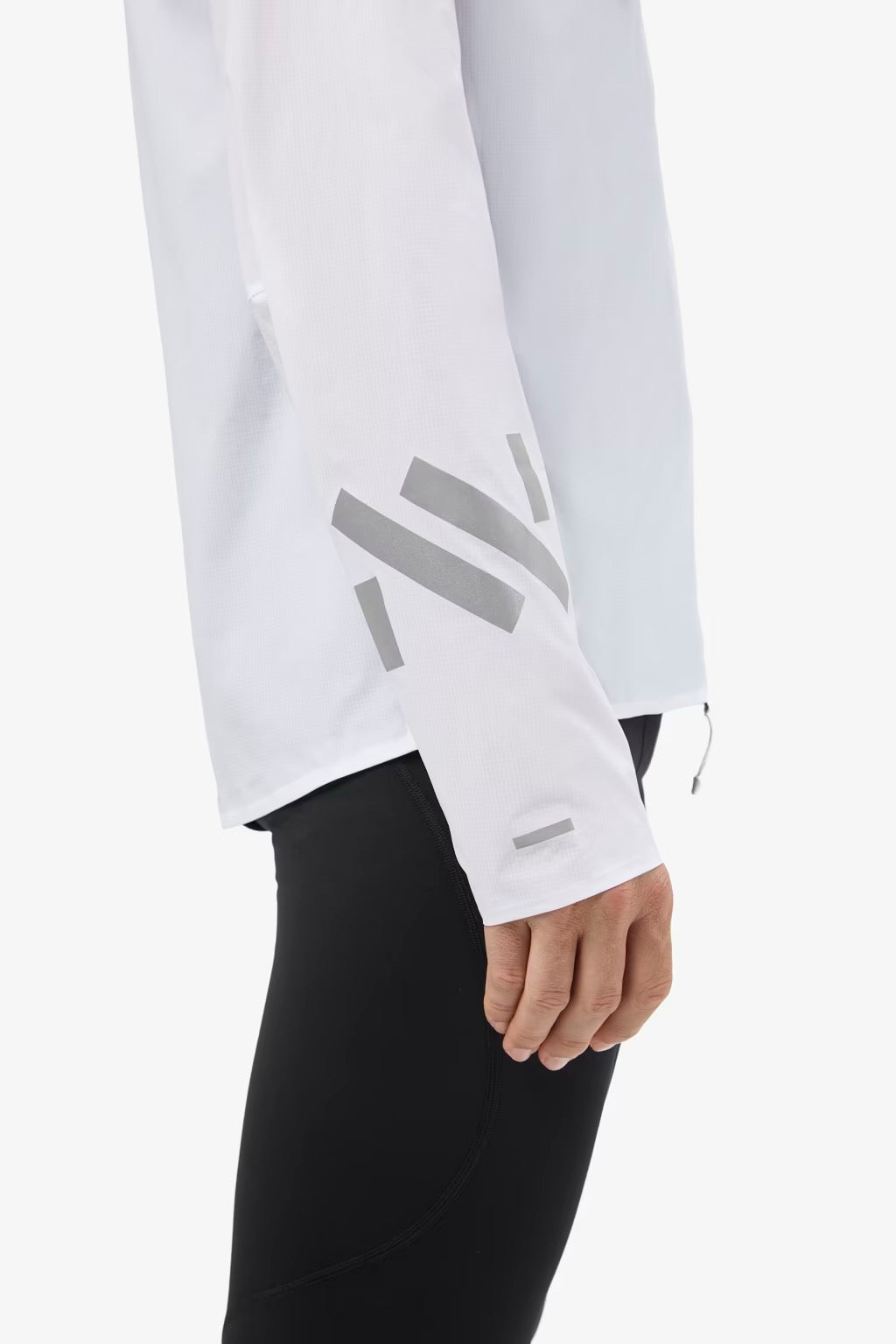 Light and clean in white, this is our lightest wind jacket—built to move freely and cut through gusts on any trail.
